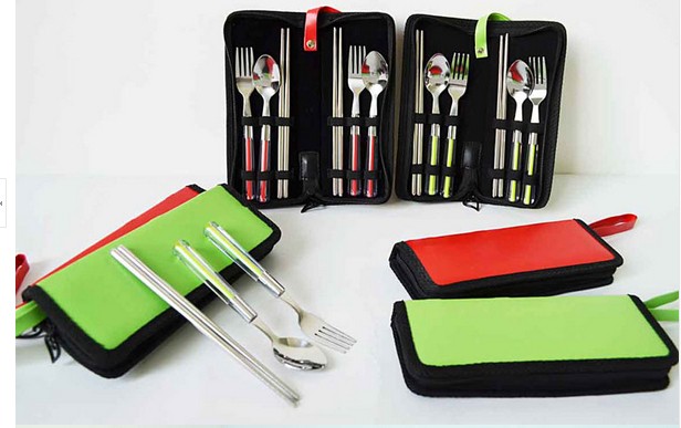 High quality 304 stainless steel spoon fork chopsticks sets for double people/Portable travel cutlery set 6pcs