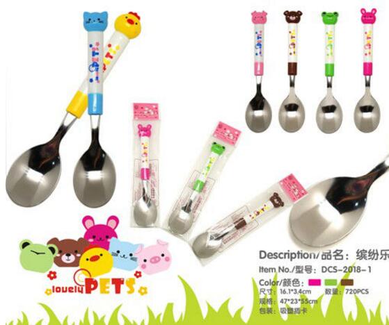 wholesale Children plastic and stainless steel Animal childkids cartoon folding fork and spoon and knife cutlery set