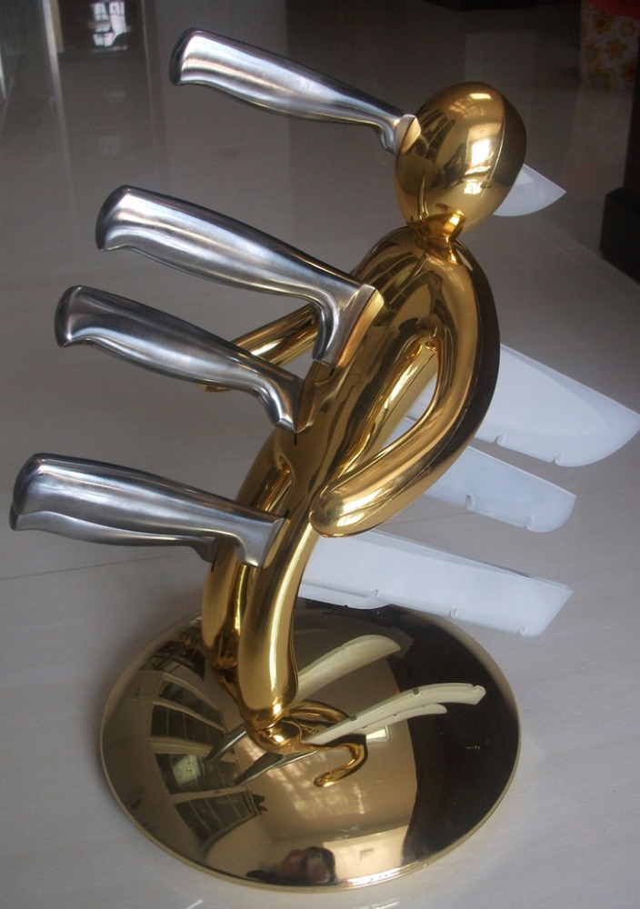 Stainless Steel Kitchen Knives Set with Golden Man Stand