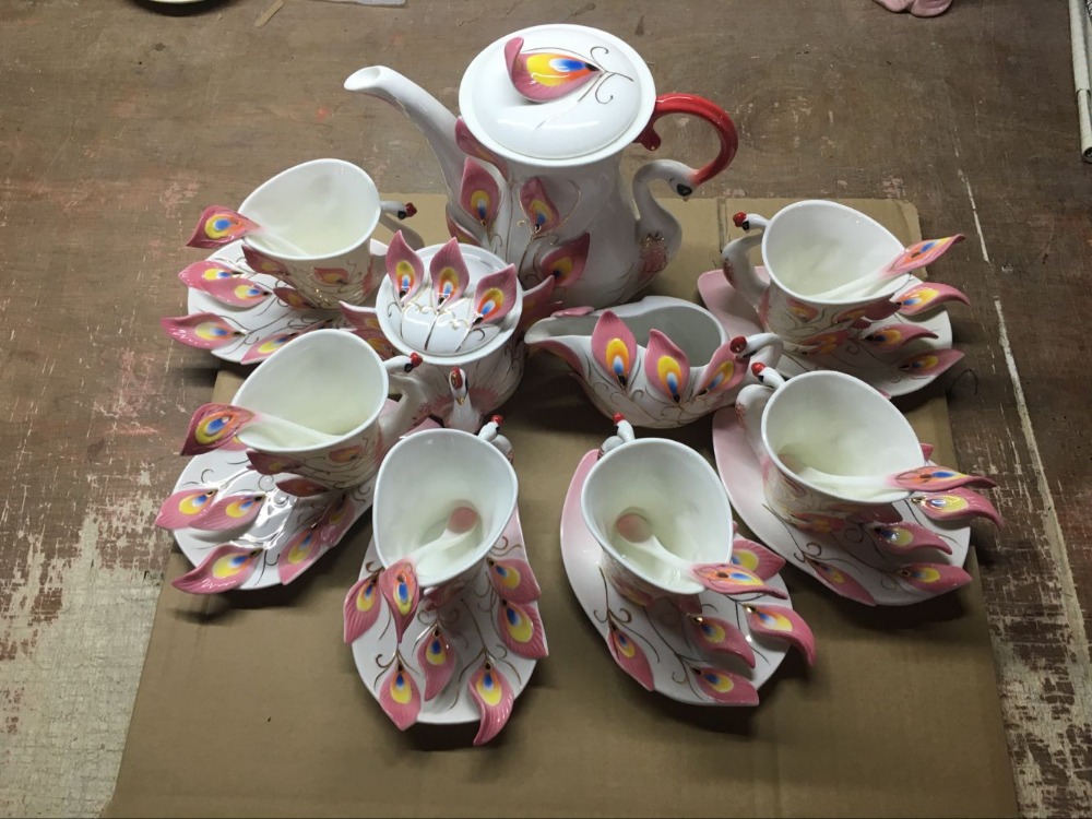 Popular Ceramic coffee set Peacock Coffee Tea Set Wedding gift tea set