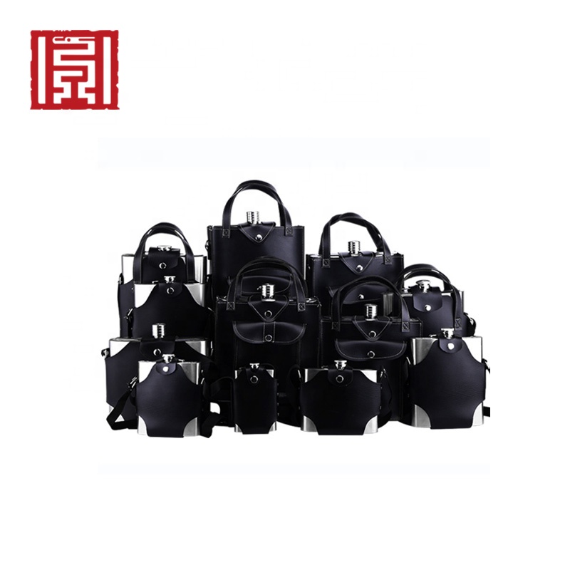 Personal stainless steel hip leather flask holster set