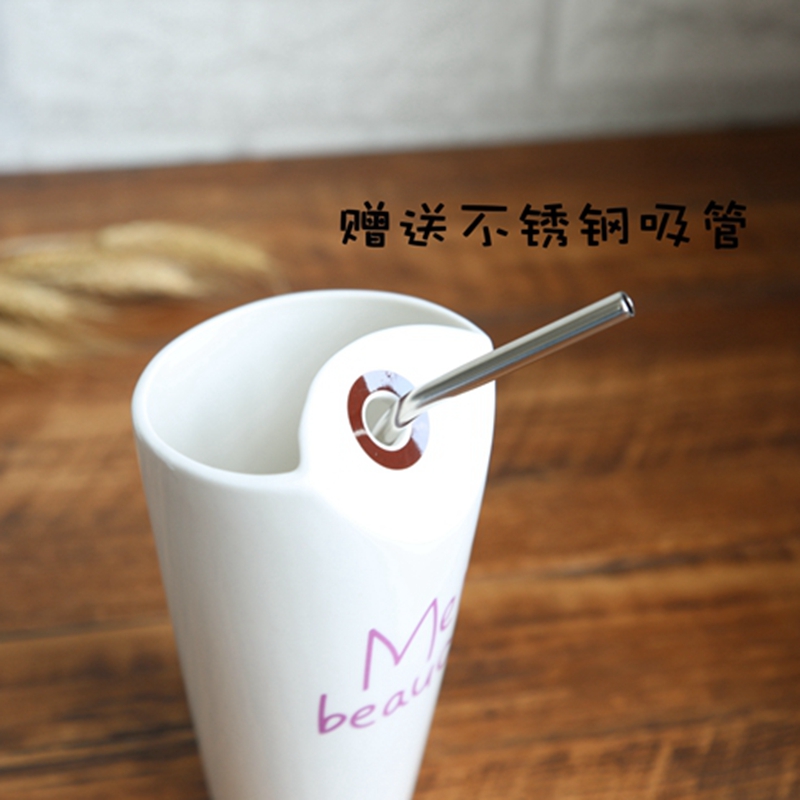 Hot sell creative writing personalized mug cup ceramic coffee cup minimalist office straw cup children Mouth with straw