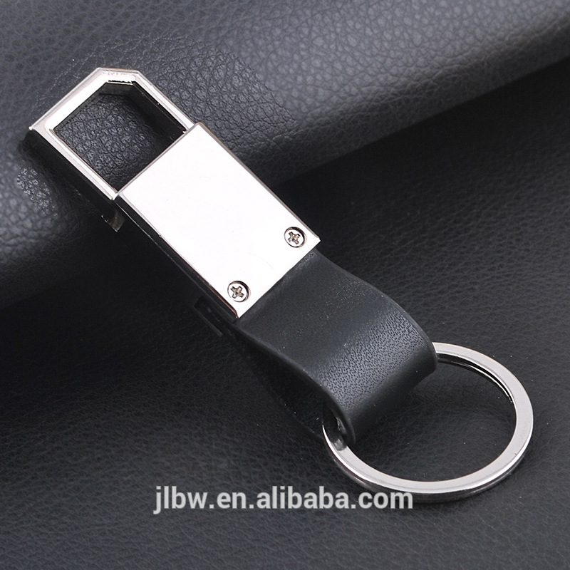 Factory direct high-grade leather men's car key ring customized lettering activities metal keychain
