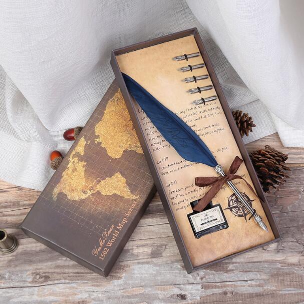 Customized Logo Feather Quill Pen Feather Dip Pen Set Business Gift Set