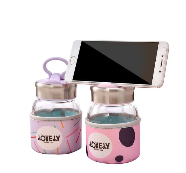 phone holder lids transparent mobile cup 320ml fancy glass bottle