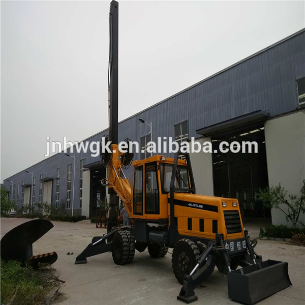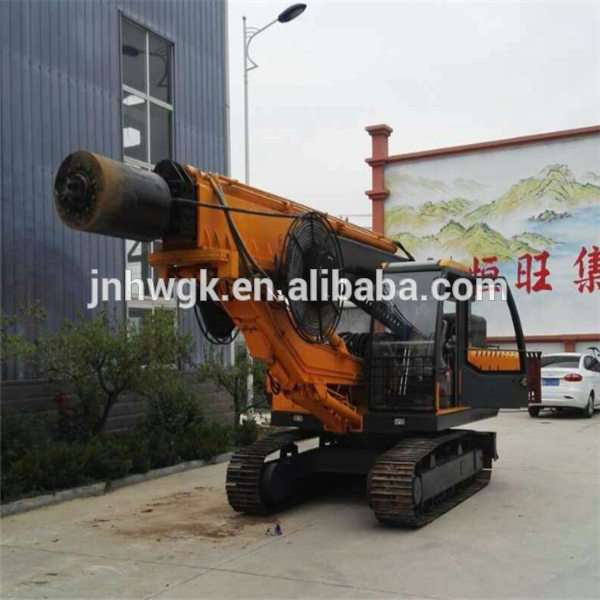 Rotary Type Pile Driver has fast traveling speed and excellent performance, because of installing lifting steel ball motor and adopting chain-type hydraulic system. High torque of power output, high speed and efficiency of piling and pile extracting. This machine adapts to various soil, which can one-time complete when piling holes in pebbles geology, without secondary pound.Self generating power and external connection power are both suitable for this machine, which makes wide applications to piling work of construction industry, highway, power construction areas etc.