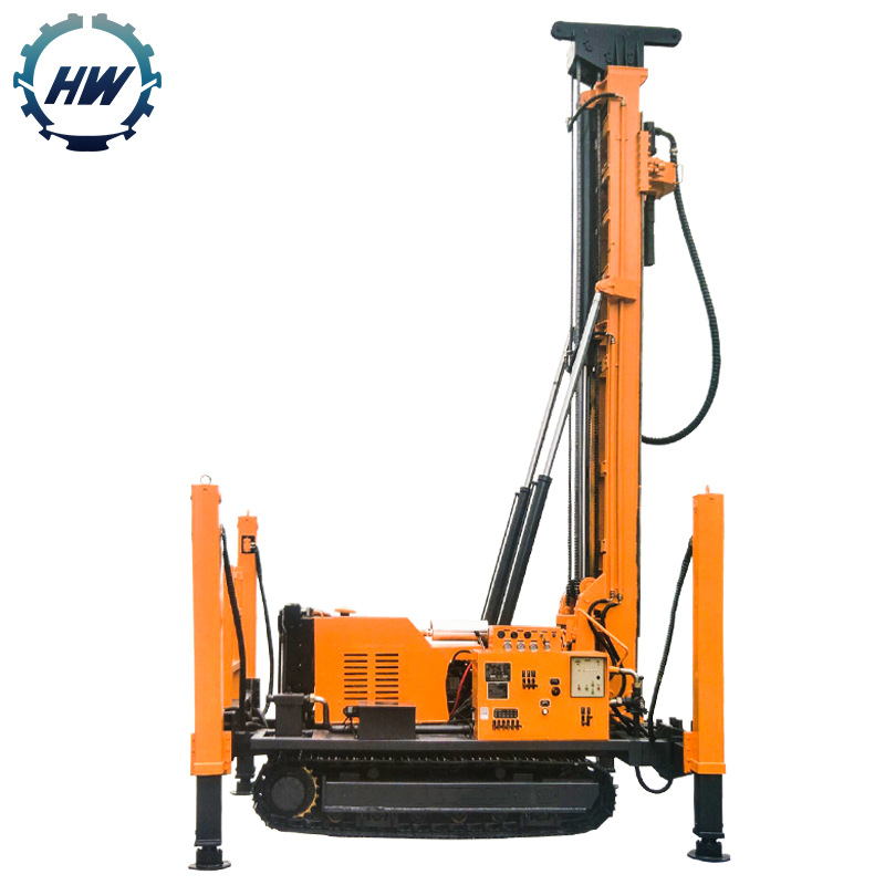 This machine can be applied to various strata, used in water well engineering, geothermal well, anchor pile hole and so on, and can be used with follow-pipe drilling. It has the advantages of whole machine hydraulic control, automatic loading and unloading drill pipe, crawler type chassis, large horsepower diesel engine, four hydraulic support leg balance, stronger terrain application ability and so on.