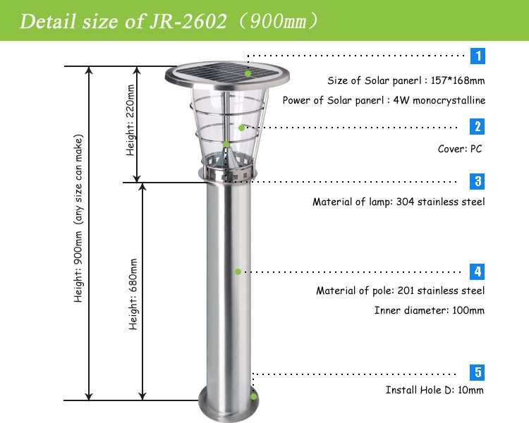 | Model No | JR-2602 Series solar LED bollard light for garden / lawn light |