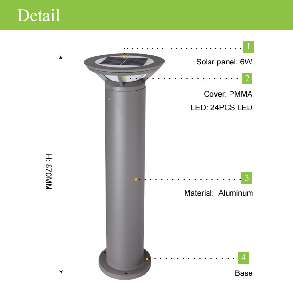 Advantages of cordless aluminum solar lawn lamps high brightness, solar outdoor motion sensor lamps, solar led garden lamps (JR-CP09) :