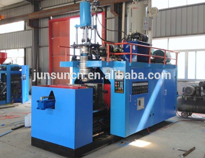 JS-5G-PC 5gallon bottle making machine is hydraulic, automatic hollow plastic molding machine with accumulator die head and the die head adopts German technology. It is special for producing 5 gallon PC water barrel and it is also suitable for producingPC, PP, PE etc and other materials hollow plastic containers in all shapes from 10 L to 30 L. The transparence of PC 5 gallon barrel is very good. This machine is widely used in such fields: chemical industry, petroleum, medicine, commodity, cosmetic, foods, lighting, tool, auto, motorcycle, shoemaking, toys and so on. It can produce plastic bucket, chemical drum, auto parts (water box, oil box, air-condition wind pipeline and empennage), tool boxes and bags, dust collector tube, chairs for bus and gymnasium, etc. Fully automatic process with low investment, high efficiency, quick and safe operation, easy for trouble shooting, maintenance and other benefit. For its good quality and our perfect service, it’s your best choice to use it.