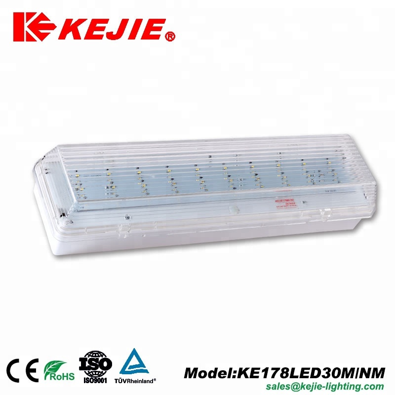 KE178LEDM30 Maintained | LED 30PCS SMD2835 | 3W | 1. PC for base and diffuser; 2. Steel sheet for gear tray; 3. NI-CD battery 3.6V 900mAh. | 1. AC220-240V 50Hz or AC110V 60Hz; 2. Emergency duration: More than 3hours; 3. 24hours recharging time; 4. IP65; 5. Over-charge and Over-discharge protecion. |