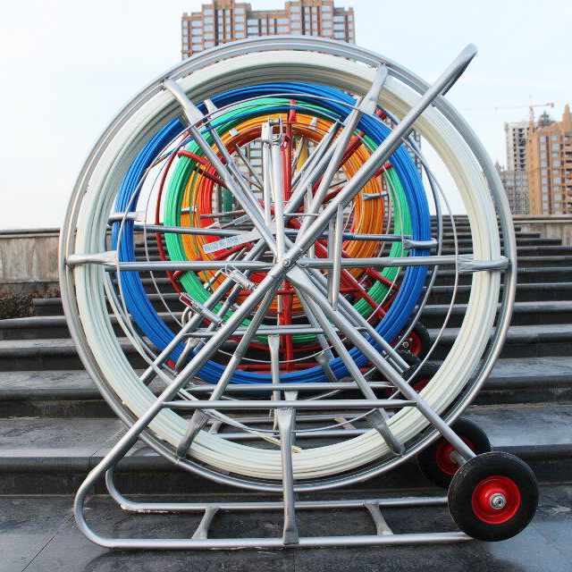 Cable duct rods is a auxiliary means for pulling cable/rope through a pipe both in ground and underground.Surface smooth and high resilience,so the FRP perforator with ease passes the narrow channel.It is consists of two parts:the strong and flexible fiberglass core and the high-pressured low density polyethylene protective layer.It is often used for setting telecom cables, cable pipe and cleaning the pipe.It can be made the work finished easily and efficiently.It has many size with the frame.The bigger ones even has the wheels to push the duct rodder.The smaller ones can be fit in any car.