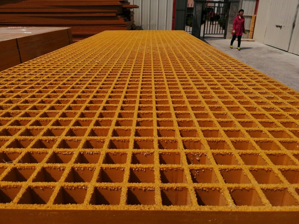 FRP Molded grating is manufactured by laying continuous glass fibres in the mould in the direction of vertical and horizontal,and thurougly wettled out with resin,layer by layer.