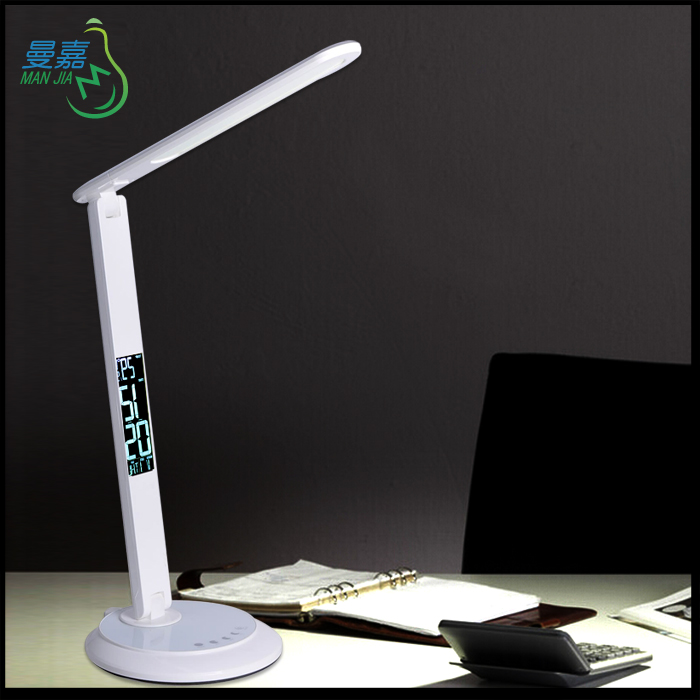 Original multi-angle adjustable reading desk lamp, 12V 4 level dimming table light with perpetual calendar, alarm clock