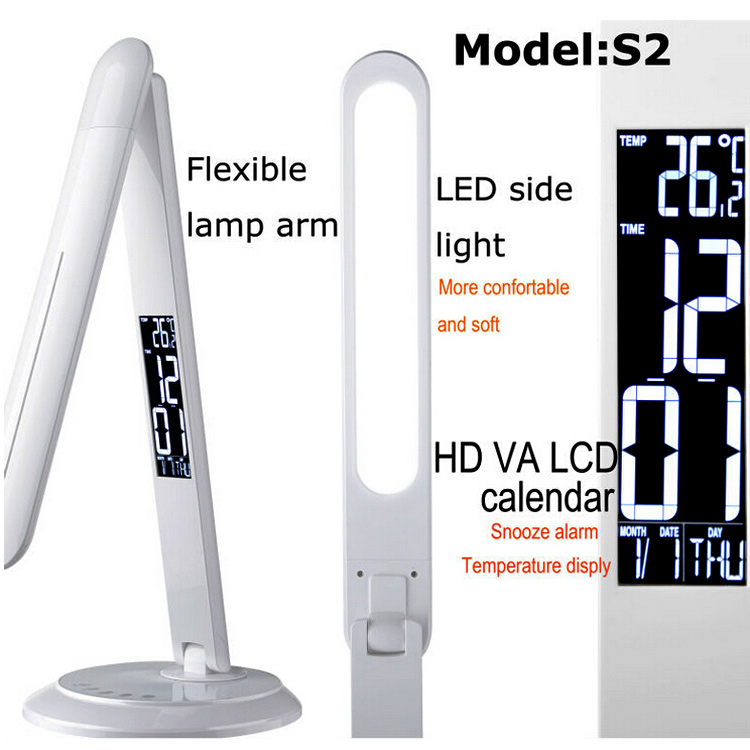 Office led table light dimming foldable led desk lamp lamp with alarm clock calendar temperature