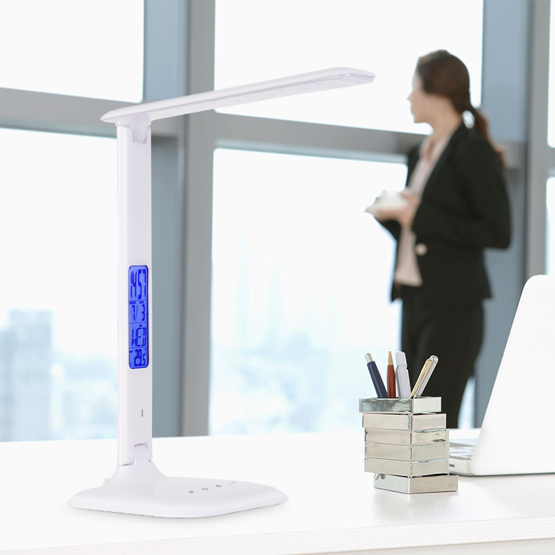 Modern office led eye protection touch dimmable foldable reading lamp table light with clock