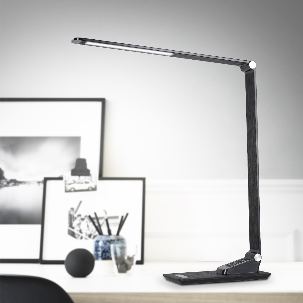 Aluminum table led lamp office 3 lighting modes flexible eye protection reading lamparas de escritorio with alarmclock