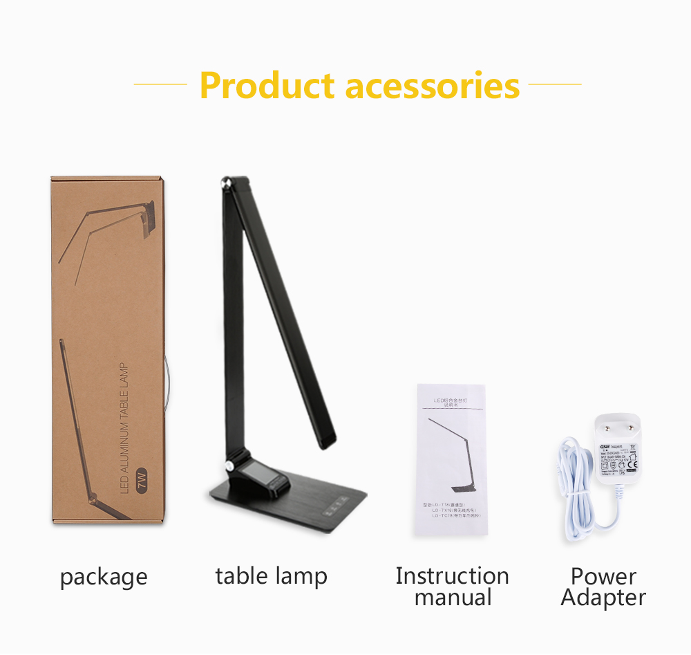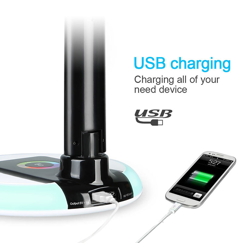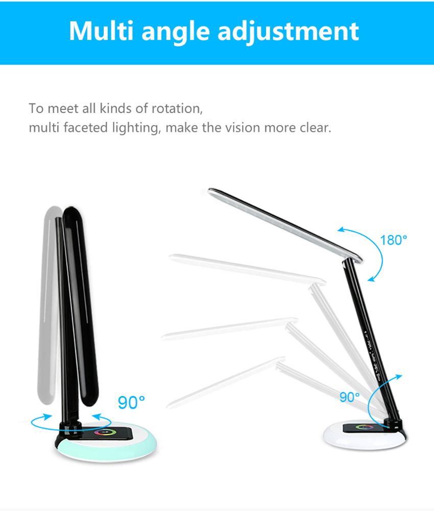 Get free sample usb desk lamp led dimmable touch 3 level folding rotation rgb table light with calendar temperature alarm clock