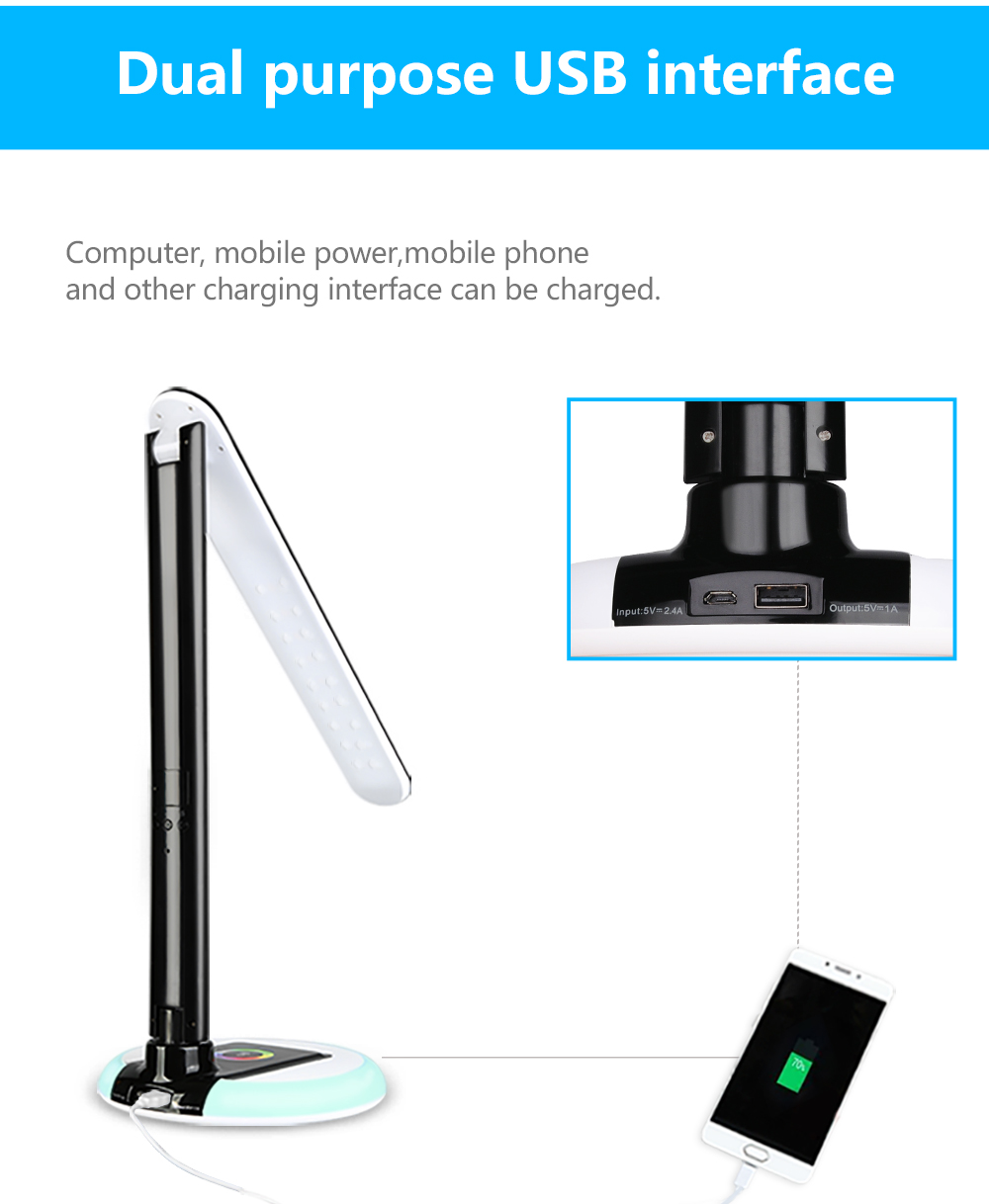 Rechargeable metal office reading usb lighting lamp folding led color charging table light with wireless charging
