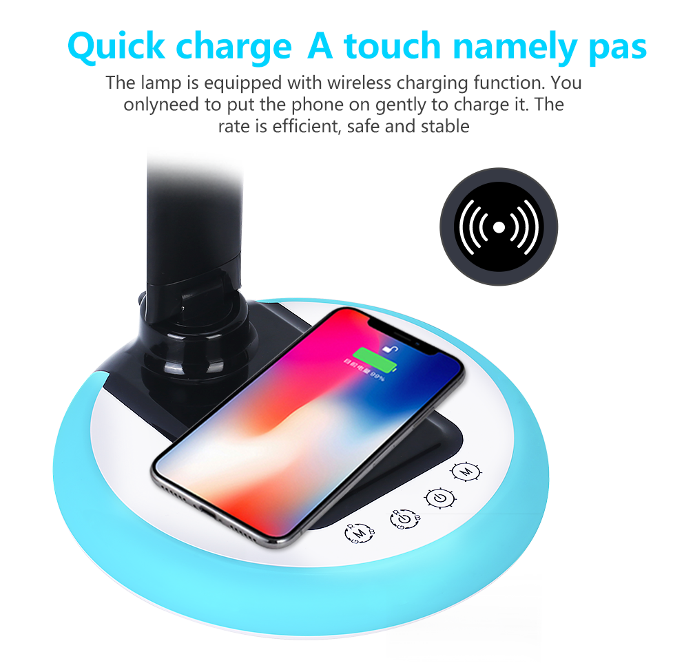 2019 Amazon kids study led usb desk light lamp, original factory 12W touch control smart wireless charging lamp