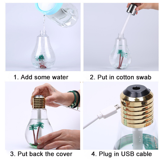 Home > Products > 400mL Capacity Bulb Humidifier Desktop USB Powered Color Changing Cool Ultrasonic Mist Humidifier