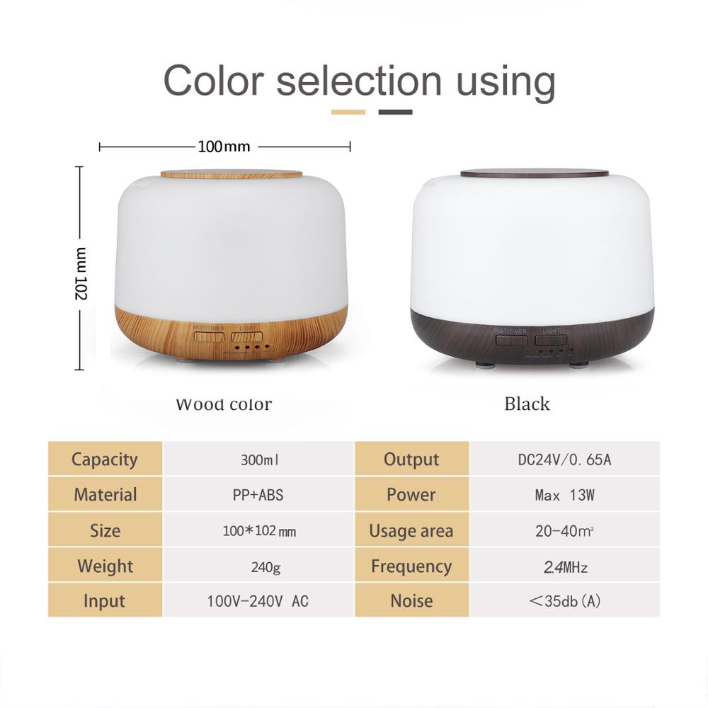 - 300ml usb diffuser Product size: 17*17*13cm Product weight: 0.9KG Accessories: Adaptor, measure cup Gift box: 17.3*17.3*13.5cm Carton (12pcs): 52*35*28.5cm Qty/container: 501 Carton/20'GP 1041 Carton/40'GP 1311 Carton/40'HQ