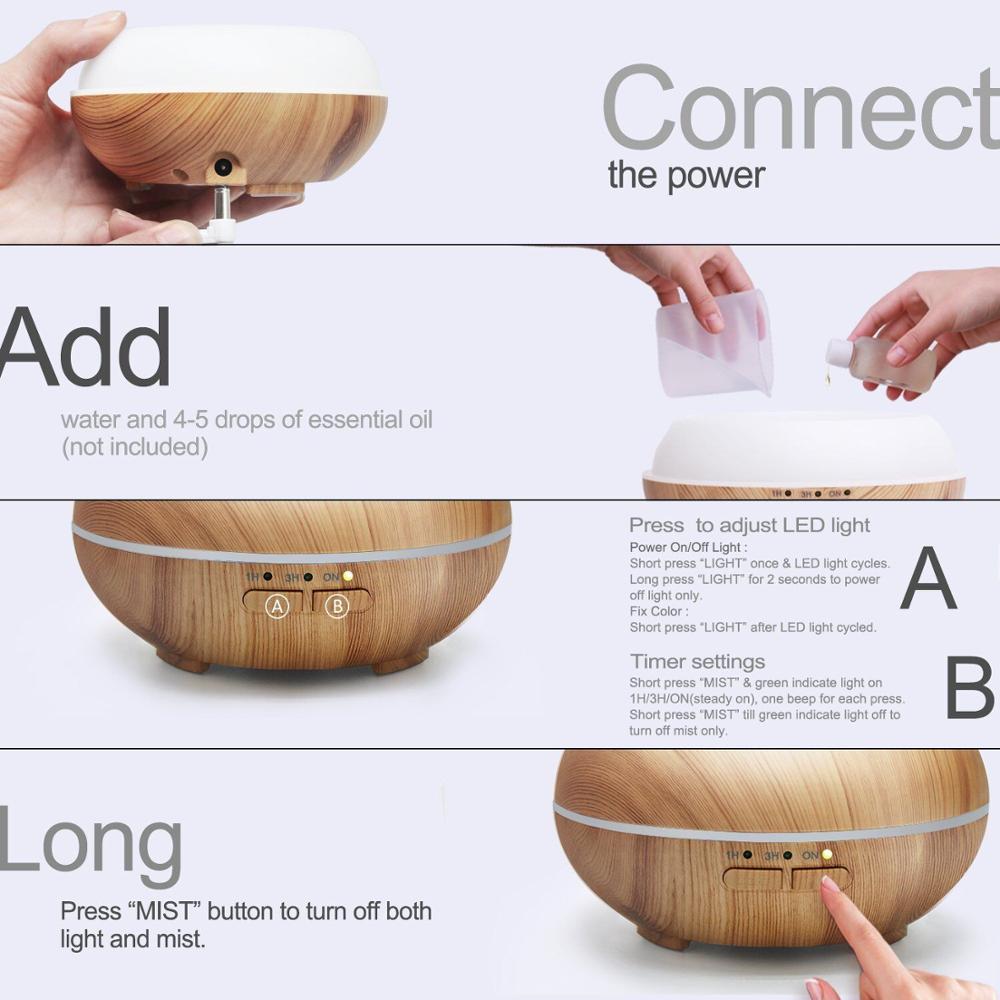 - 150ml humidifiers hot wood grain aroma diffuser N.W.: 0.35kg/pcs; G.W:9.25kg/ctn Product Size: 130*130mm Inner box(Neutral white box): 130*130*155mm Carton(24pcs):57*29*48cm Qty of CTN:24PCS/CTN