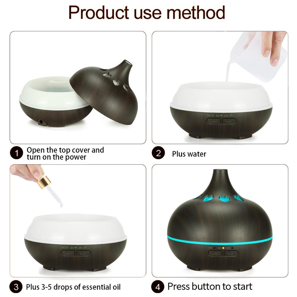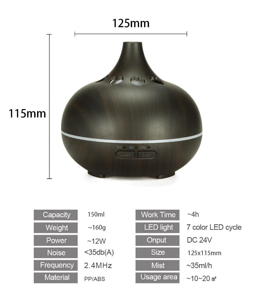 Product: views:11Adjustable Time Setting & Color Light Changing Air Humidifier, 150ml Wood Grain Aromatherapy Essential Oil Diffuser