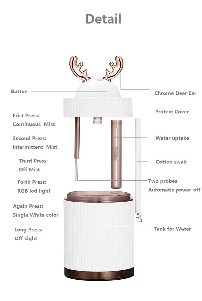 Cool Mist Humidifier Deer,260ml Cute Humidifiers for babies Air Purifiers Essential Oil Humidifier