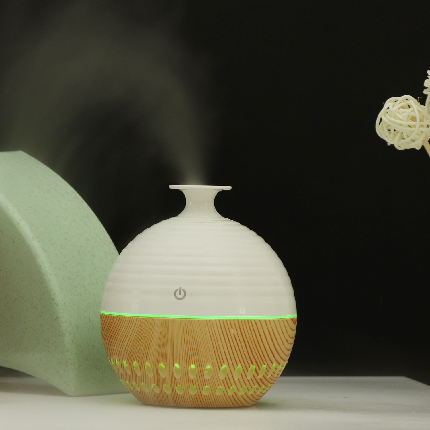 - Auto cool mist aroma humidifier wood grain