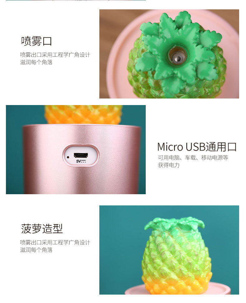 Product: views:6Unique Pine Apple Humidifier, USB Rose Gold color 130ml Humidifier with 7 color led change