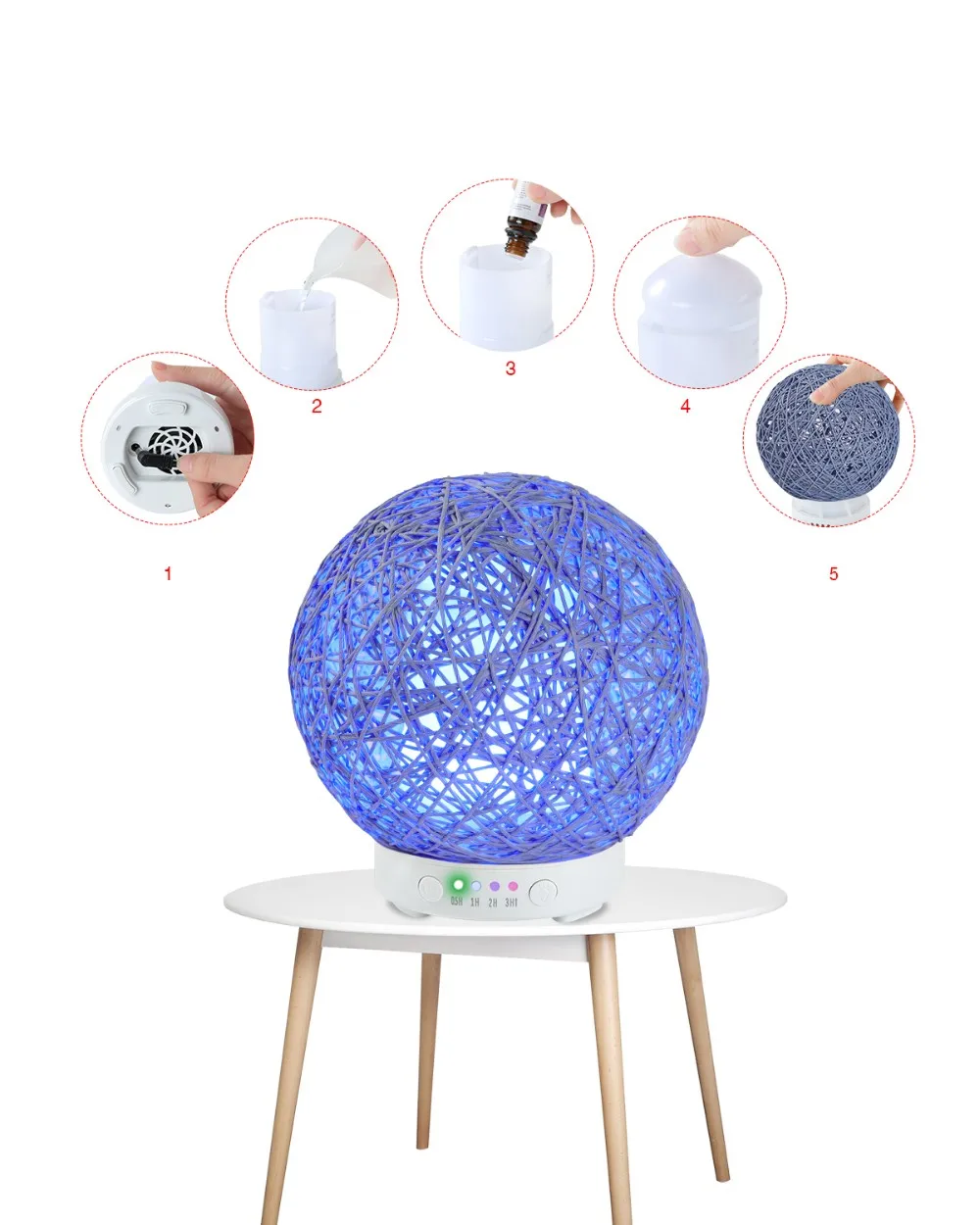 Functional:aromatherapy, humidification, purification of air, colorful night lights, home decorationProduct name :Creative cane ball ultrasonic Aroma diffuser