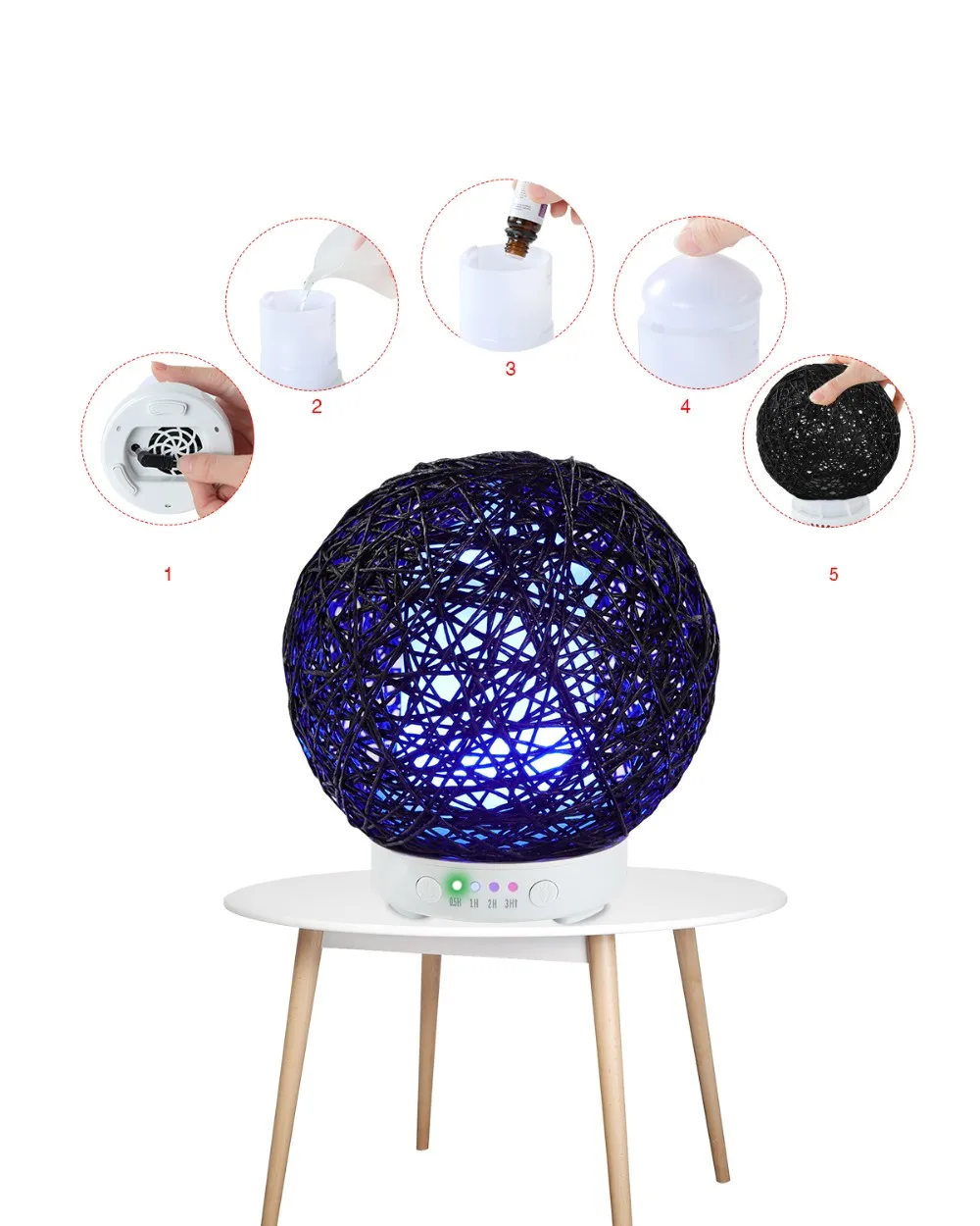 Functional:aromatherapy, humidification, purification of air, colorful night lights, home decorationProduct name :Creative cane ball ultrasonic Aroma diffuser
