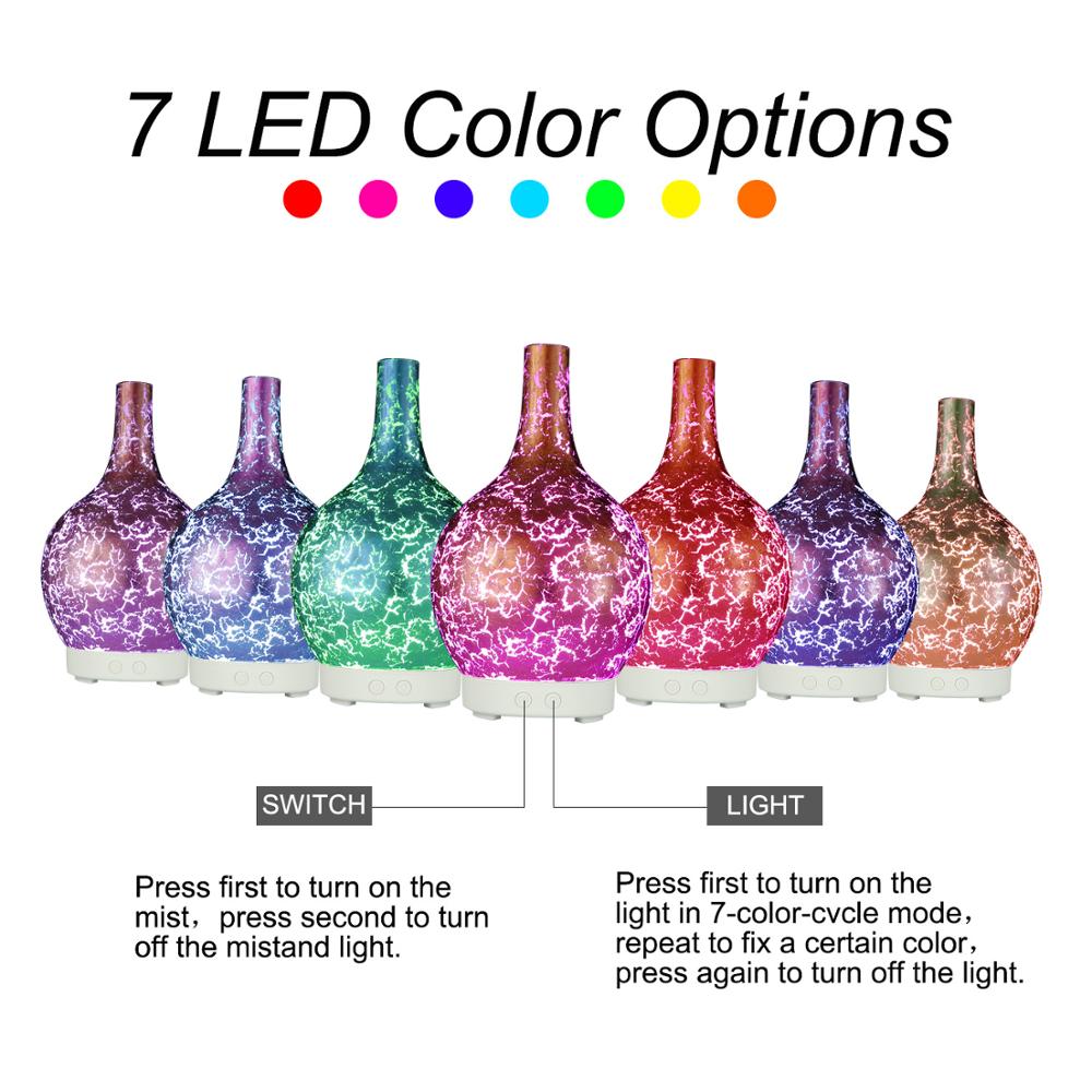 Crackle Mosaic Glass Iridescent Amber Aroma Essential Oil Diffuser Aromatherapy 100ml Housing Humidifier with 14-Color LED Light