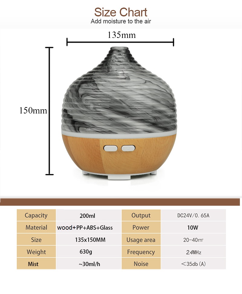 Name: Essential Oil Aroma Marble Glass Diffuser with Real Wood Base