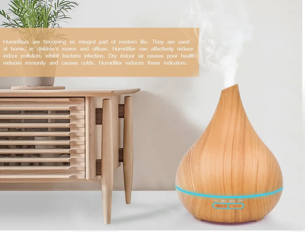 2019 HOT 400ml Aromatherapy Essential Oil Diffuser Wood Grain Aroma Diffuserswith Timer Adjustable Mist & Remote Control