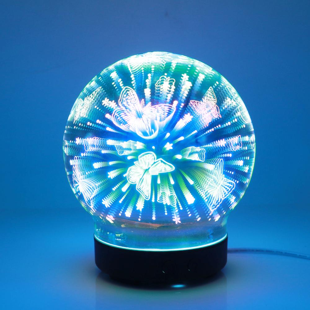 100ml Ultrasonic essential oil humidifier cool mist aroma diffuser with butterfly pattern 3D effect colorful LED light