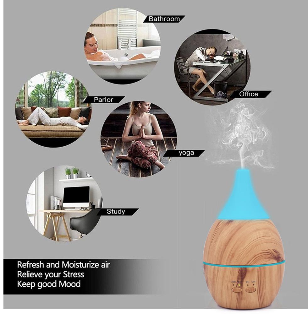 A Natural and Graceful Lifestyle. The aromatherapy essential oil diffuser features super modern wood grain looking similar to an egg, which will go with any decor perfectly, like a decorative piece, ideal for office, spa, salon, Yoga studio, child"s room, physical therapy studios and any room you want aromatherapy.