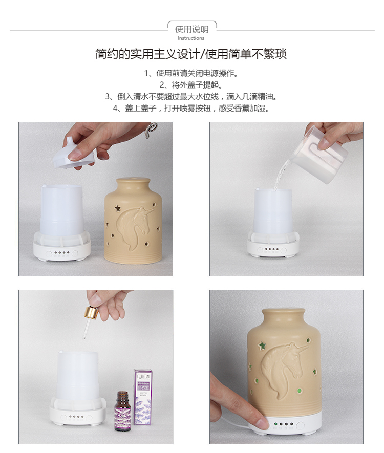 - Packing of 2019 New Design Ceramic Aroma Stone Diffuser, China Wholesale Aroma Electric Diffuser Ceramic, Ceramic Aroma Diffuser Humidifier: Product size: 92*174Hmm Box size: 13*13*17.5cm Carton size(24psc):54*40.5*38cm Accessories: Adaptor