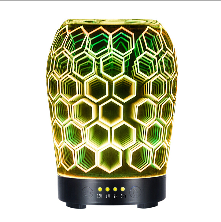 Hidly Hot 3D Glass Essential Oil Diffuser,100ml Wood Grain Base Aromatherapy Cool Mist Humidifiers for home table light