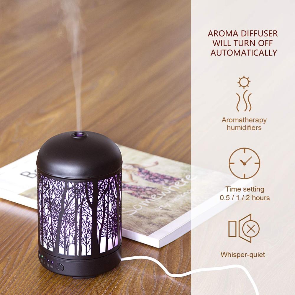 Black Iron Hollow-out Metal Cool Mist Humidifiers,Tree Forest Oil Ultrasonic Diffuser for 100ml capacity