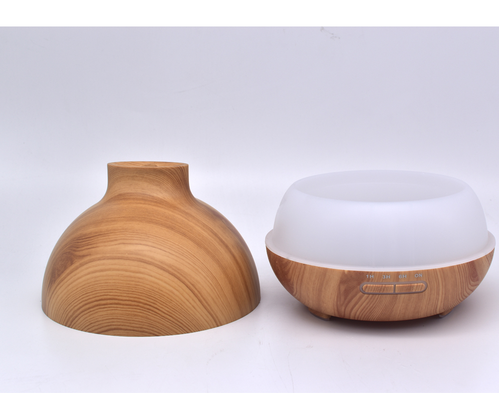 Dark Wood Grain 400ml Large Capacity Essential Oil Diffuser Ultrasonic Aroma Humidifier with Soothing Color LED Light and Timers