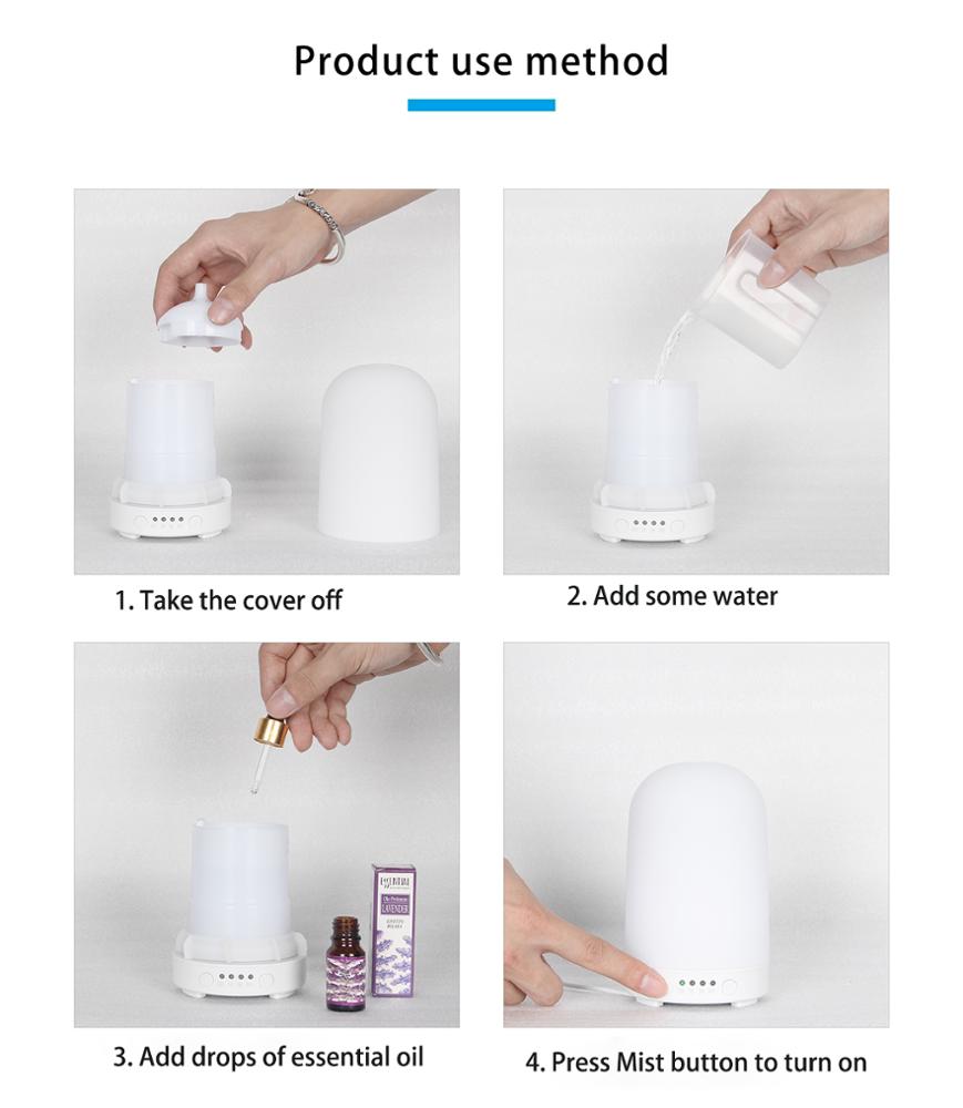 100ml Ceramic Oil Diffuser Silent Baby Room Car Office Travel Tabletop Color Changing LED Ceramic Air Humidifier