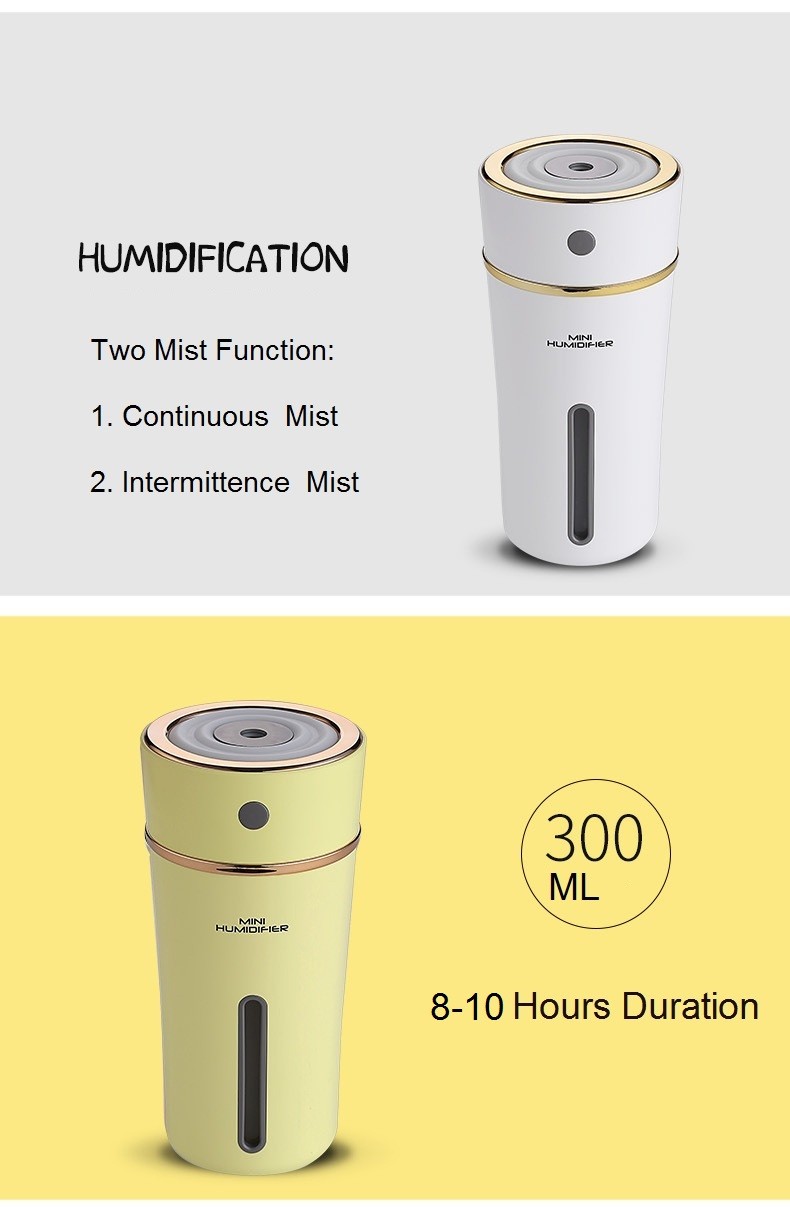 Wireless Power Cool Mist Travel Humidifier, Love Heart Cup Colorful Moon Light Humidifier with Battery for home office hotel