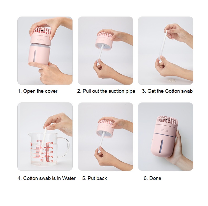 Mini Portable Cool Fan USB Desktop Air Humidifier,400ml Battery Operated 400ml Air Personal Humidifier with Led Light