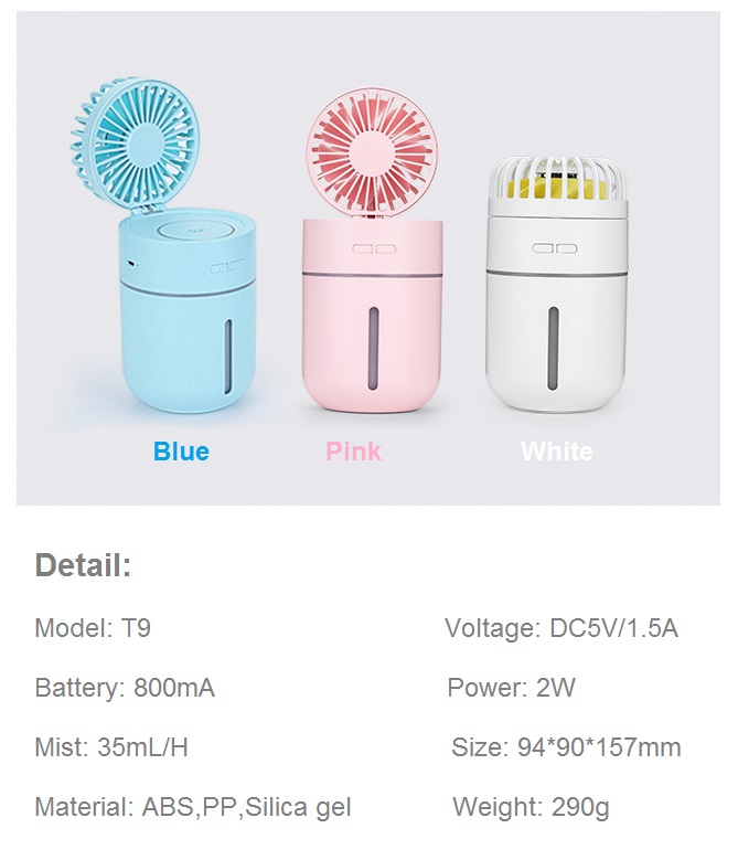 Asian Hot T9 Fan USB Desktop Air Humidifier,400ml Battery Powered 400ml Air Innovations Humidifier Diffuser with Factory Price