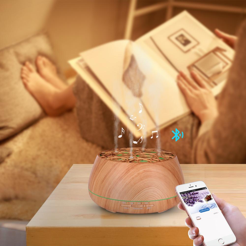 New essential oil diffuser with wifi bluetooth speaker, 7 color changing LED light, 400 ml humidifier with adjustable mist mode