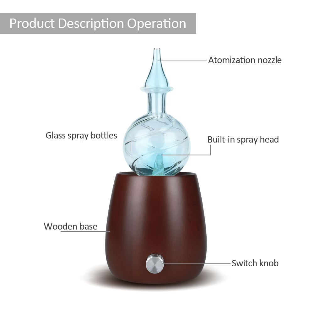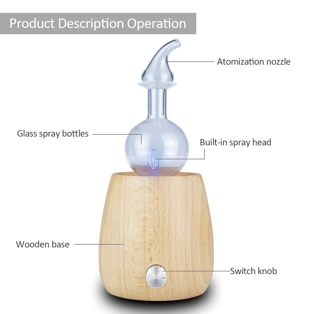 Pure Handmade Wood Glass Nebulizing Essential Oil Diffuser Aroma Air Freshener