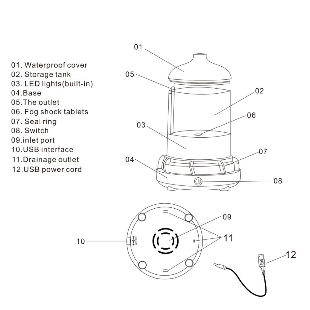 USB Portable Glass Diffuser, Air Cool Mist Humidifier Home Decorative Diffuser with 7 color Led Change