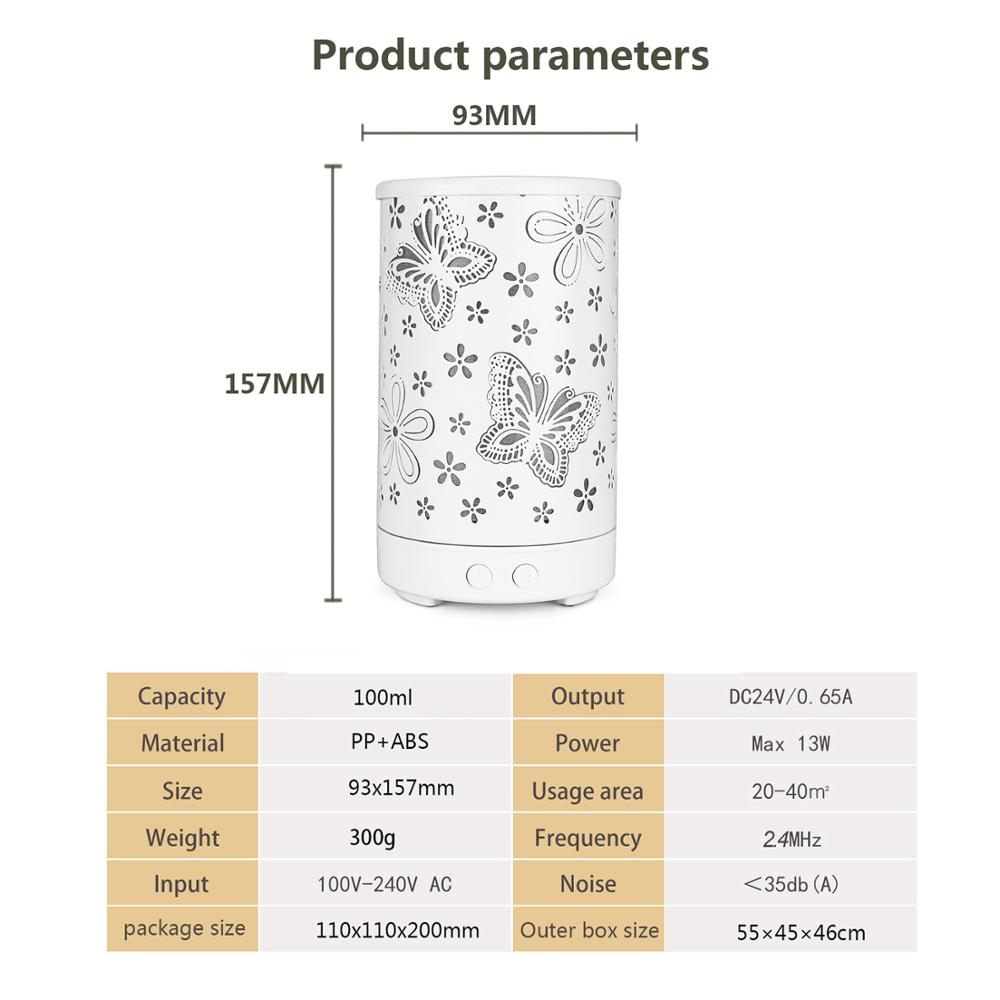 New Design 2019 Metal Essential Oil Diffuser Aromatherapy with Butterfly &Flower Bright Candle Light Soothing Cool Mist Diffuser